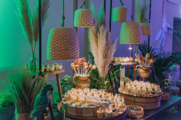 We created a patisserie table on a colonial stand complete with parrots and pampas grass and incorporated mini puddings such as baked yoghurt with gin and rhubarb compote and a passionfruit posset with grains of paradise shortbread.