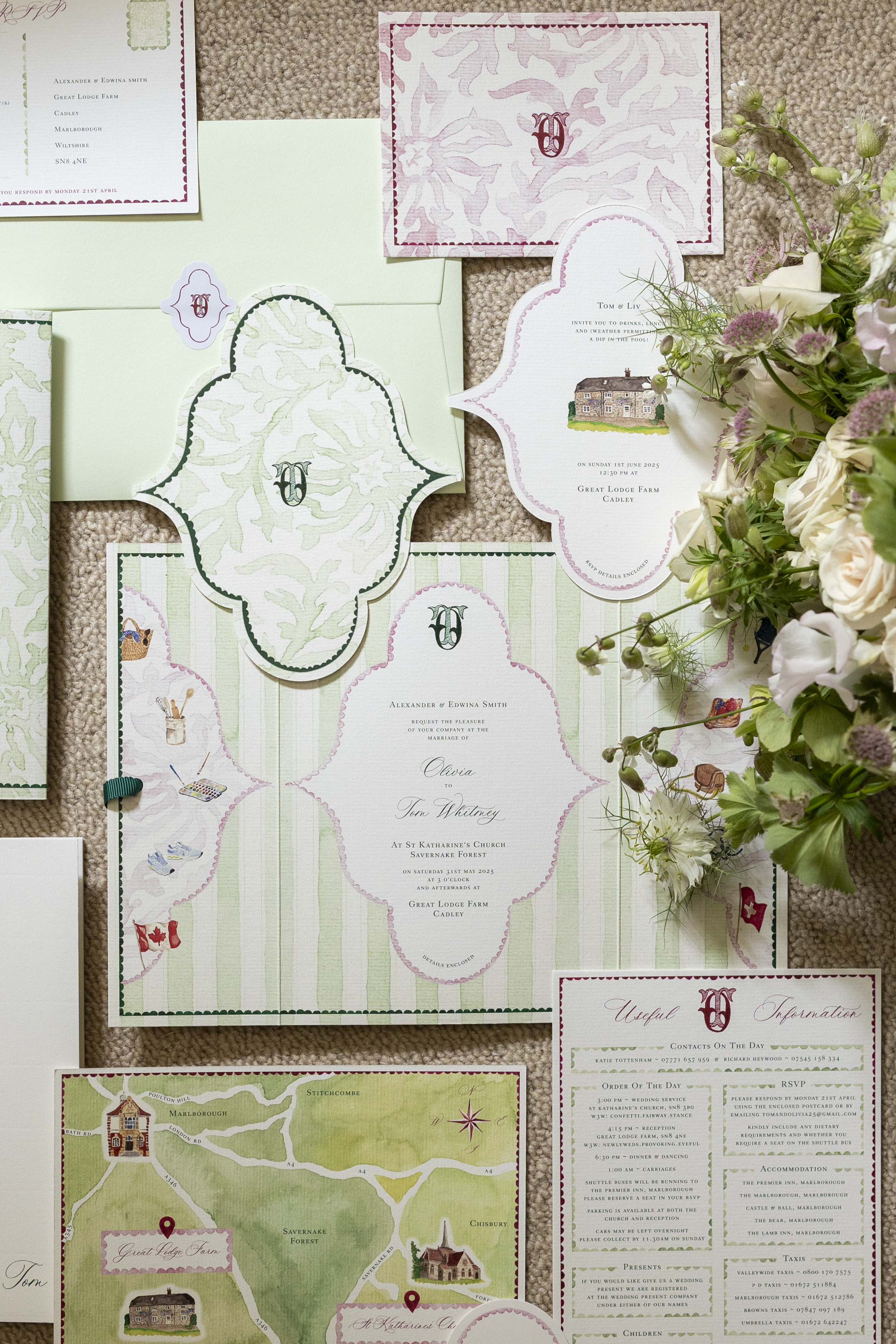 Olivia is an incredibly talented designer (@_ocostudio) and created and styled all her wedding stationery which made it so special and totally bespoke. She created her invitations using watercolour drawings taking inspiration from the beautiful Raj Tent Club marquee wall linings and designing a stunning logo with joint initials.