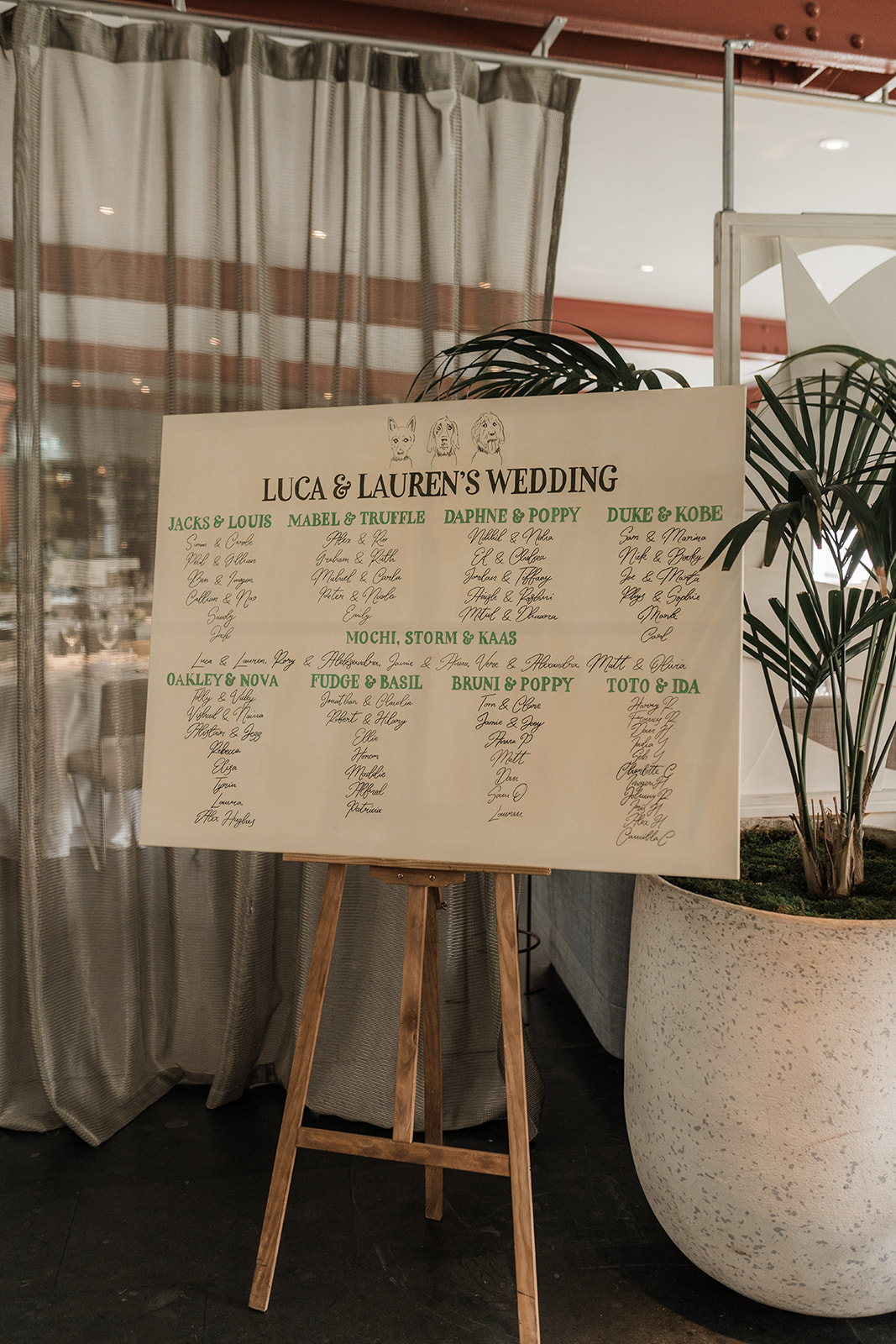 The personal touches that brought special moments to their day included tables named after the many dogs in their life and a beautifully designed seating plan by Olive Hill Designs, incorporating drawings of them. Lauren and her mother have a lifelong love of Toblerone so it was important to find a way to include it creatively. Much to the joy of everyone present, we designed and created a Toblerone mountain instead of a traditional wedding cake.