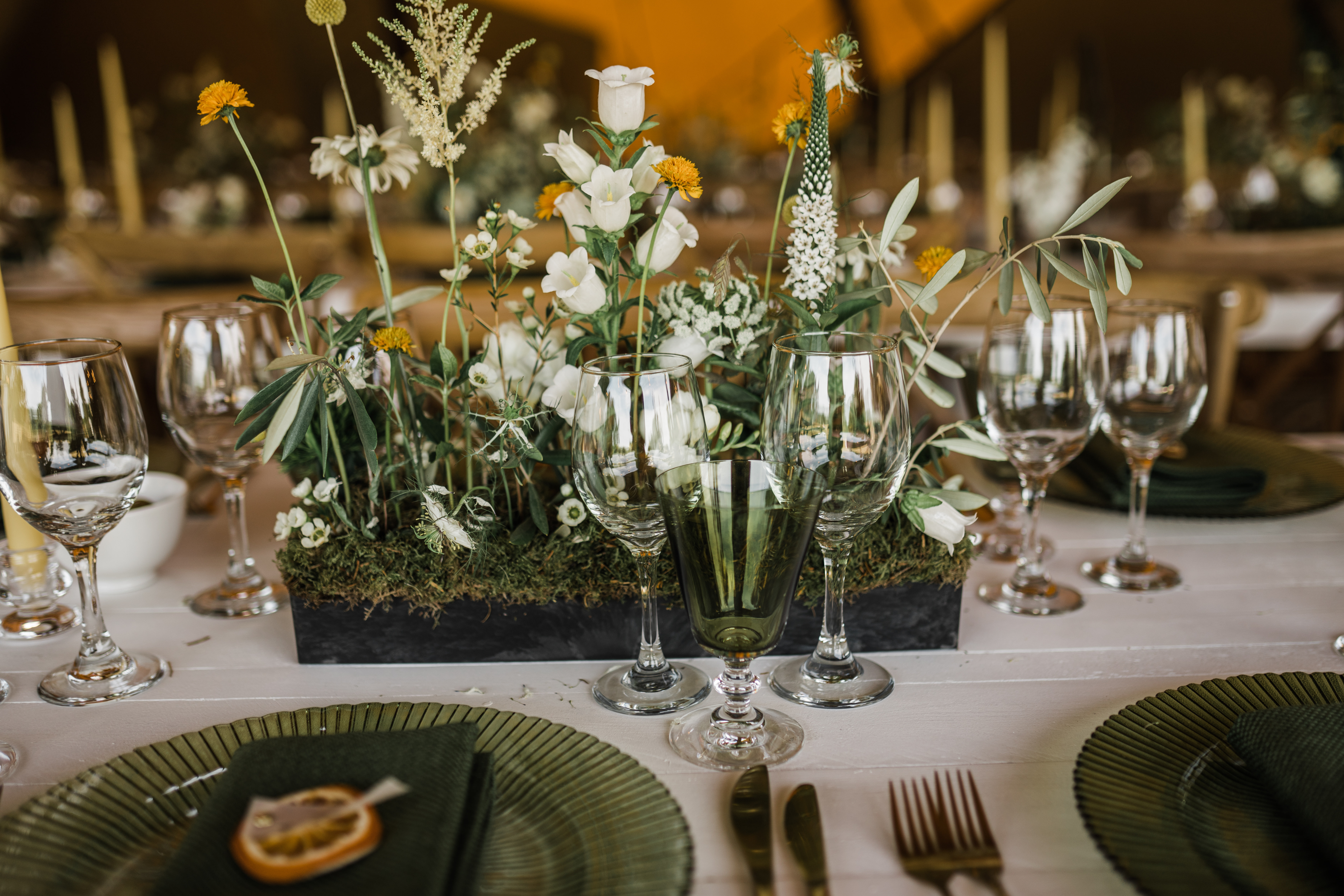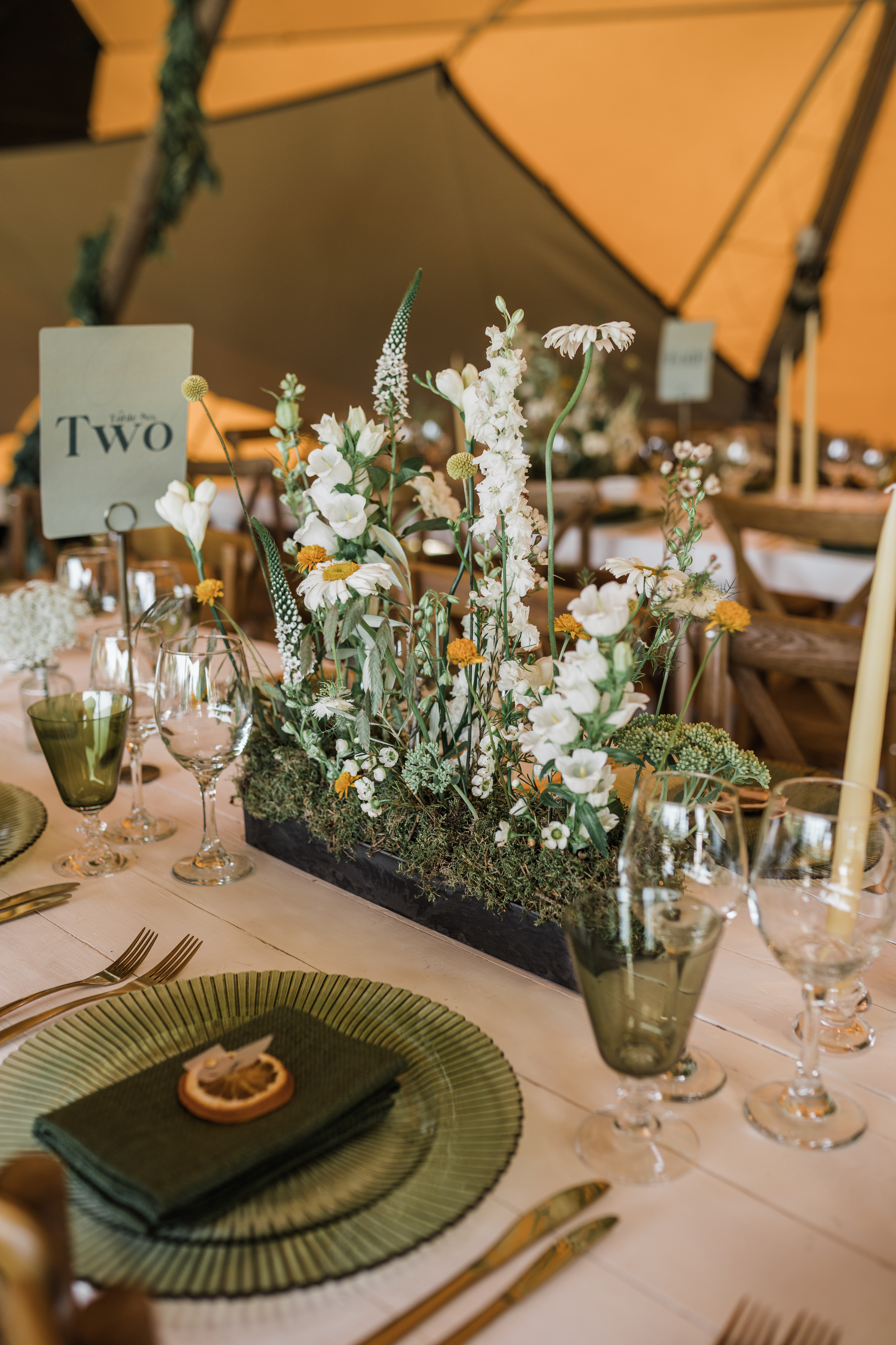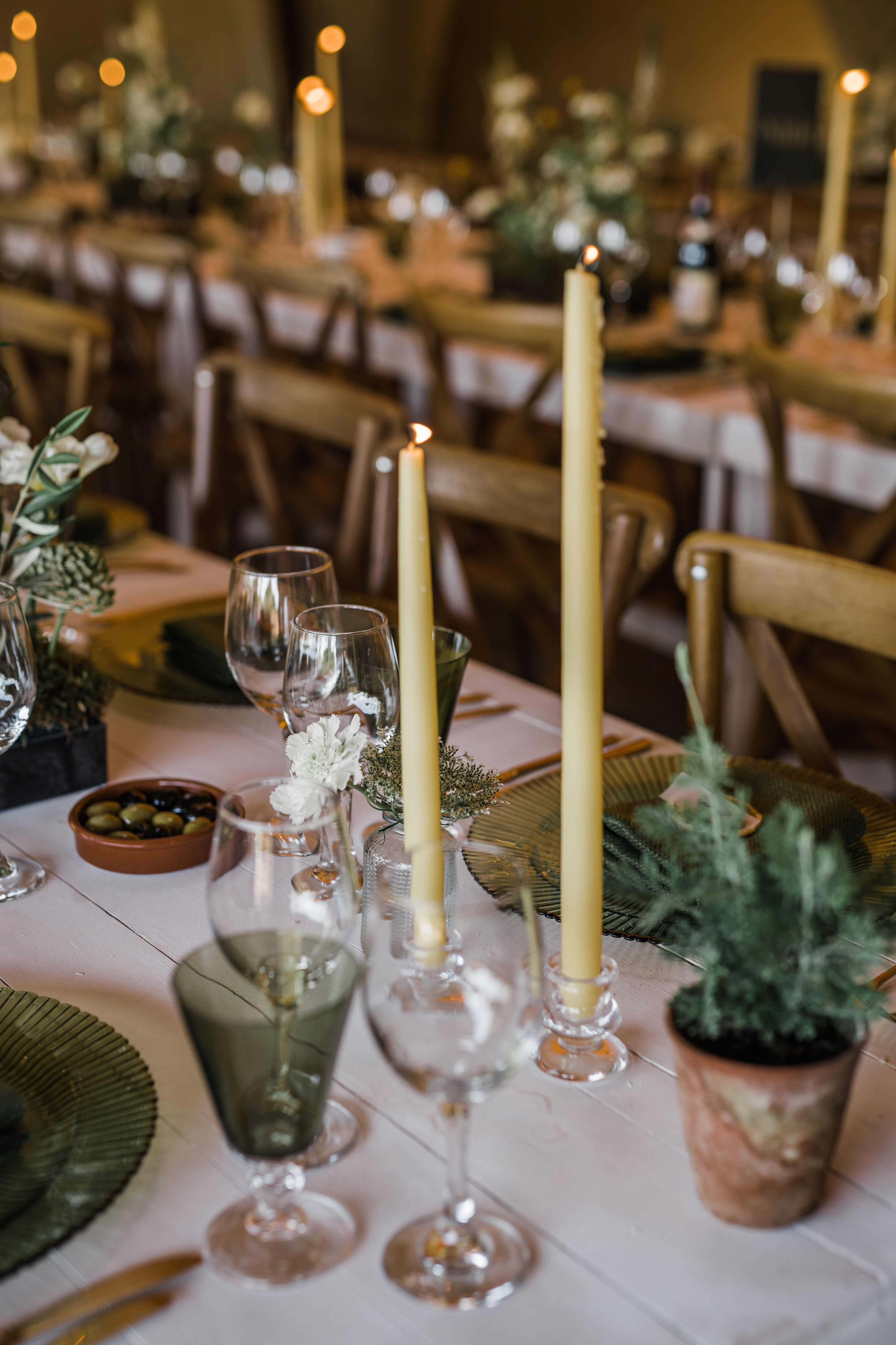A Mediterranean themed wedding in East Sussex inspired by family holidays in Greece. The colour palette incorporated white, olive green and lemon yellow. Guests were given bottles of Limoncello, flowers appeared to grow from meadow boxes, and the sun shone from dawn till dusk.