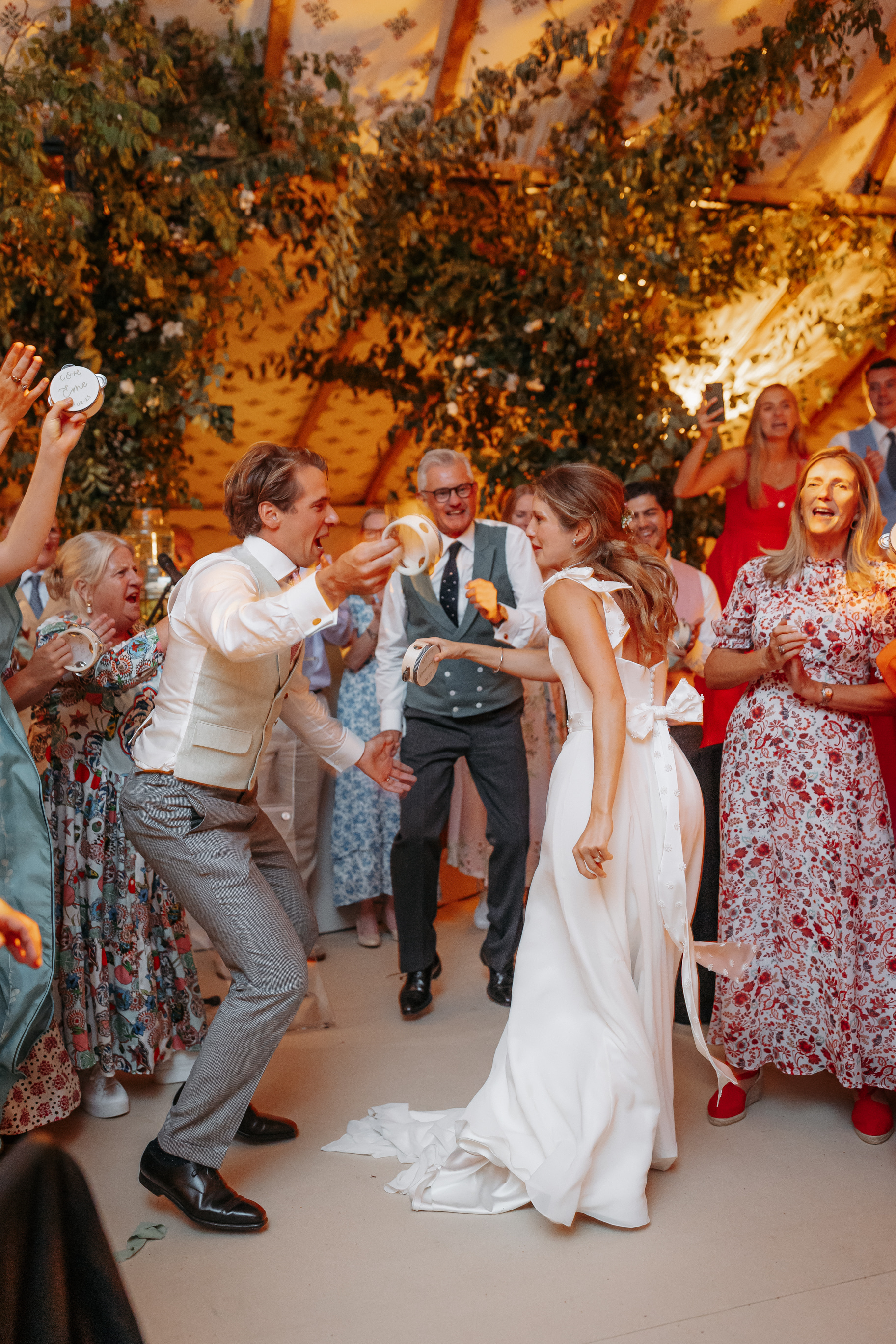 The bride knew from the outset that she wanted her guests to party and being a bank holiday weekend they certainly did! Tambourines and roaming bands were the order of the day.