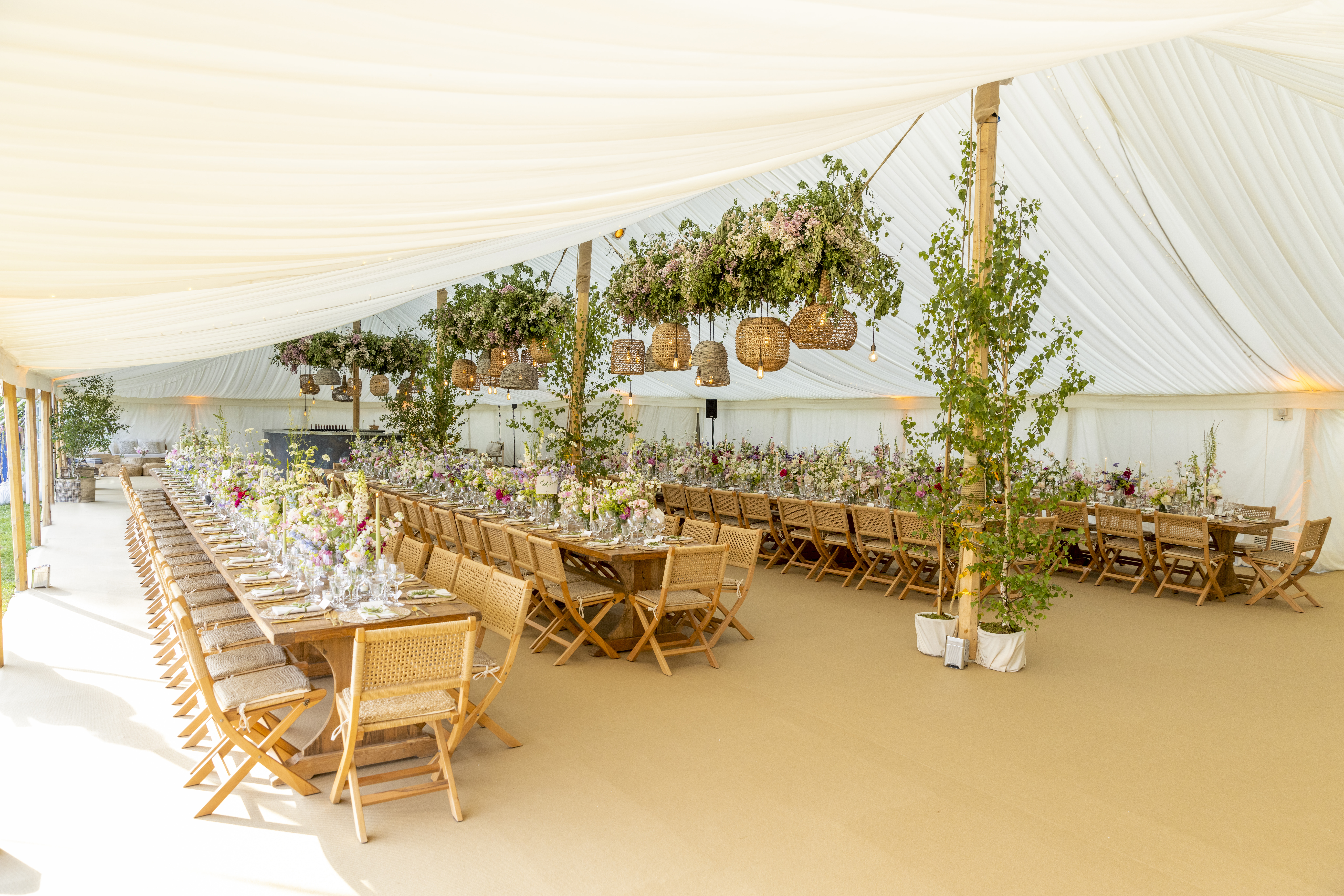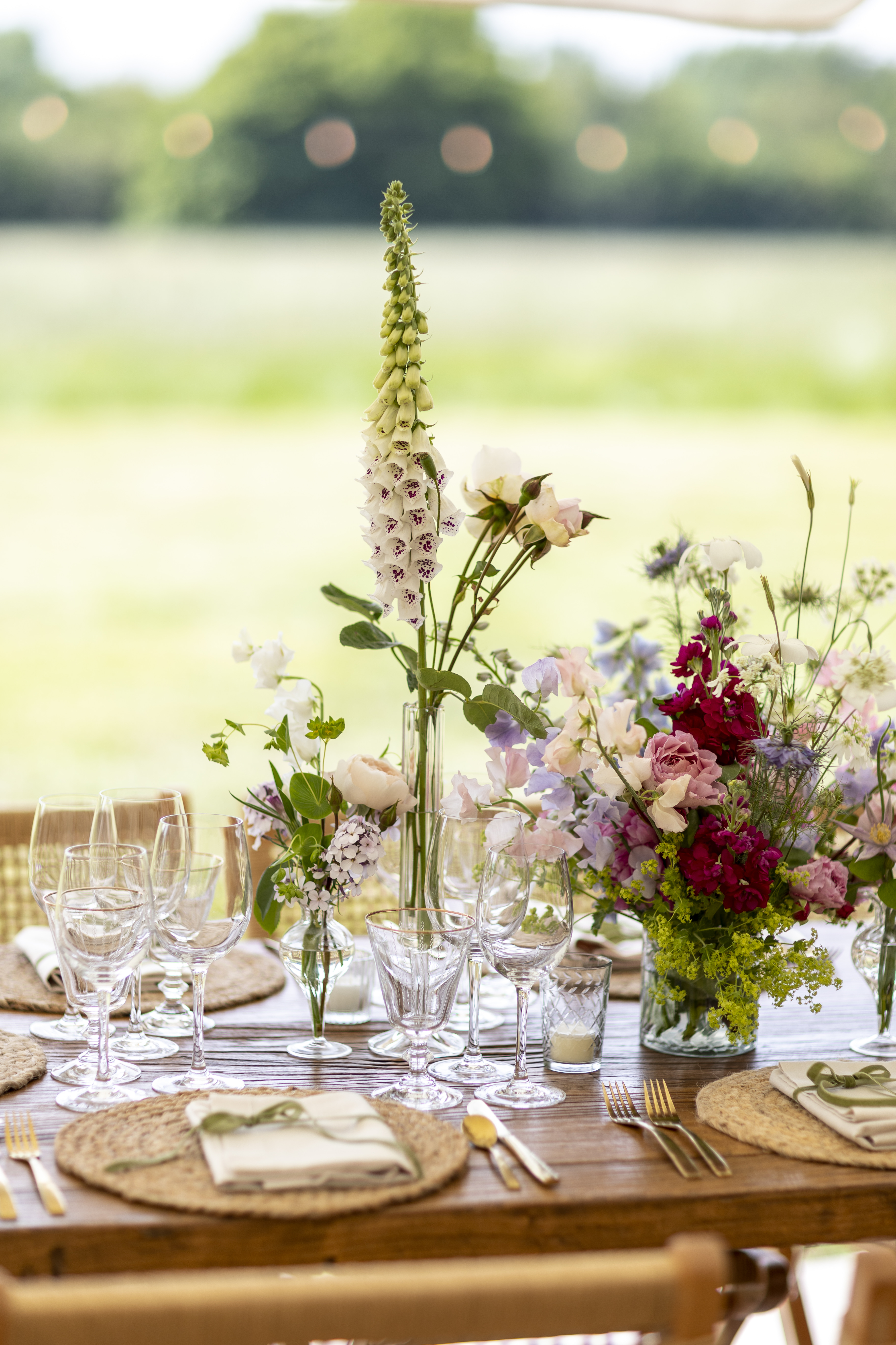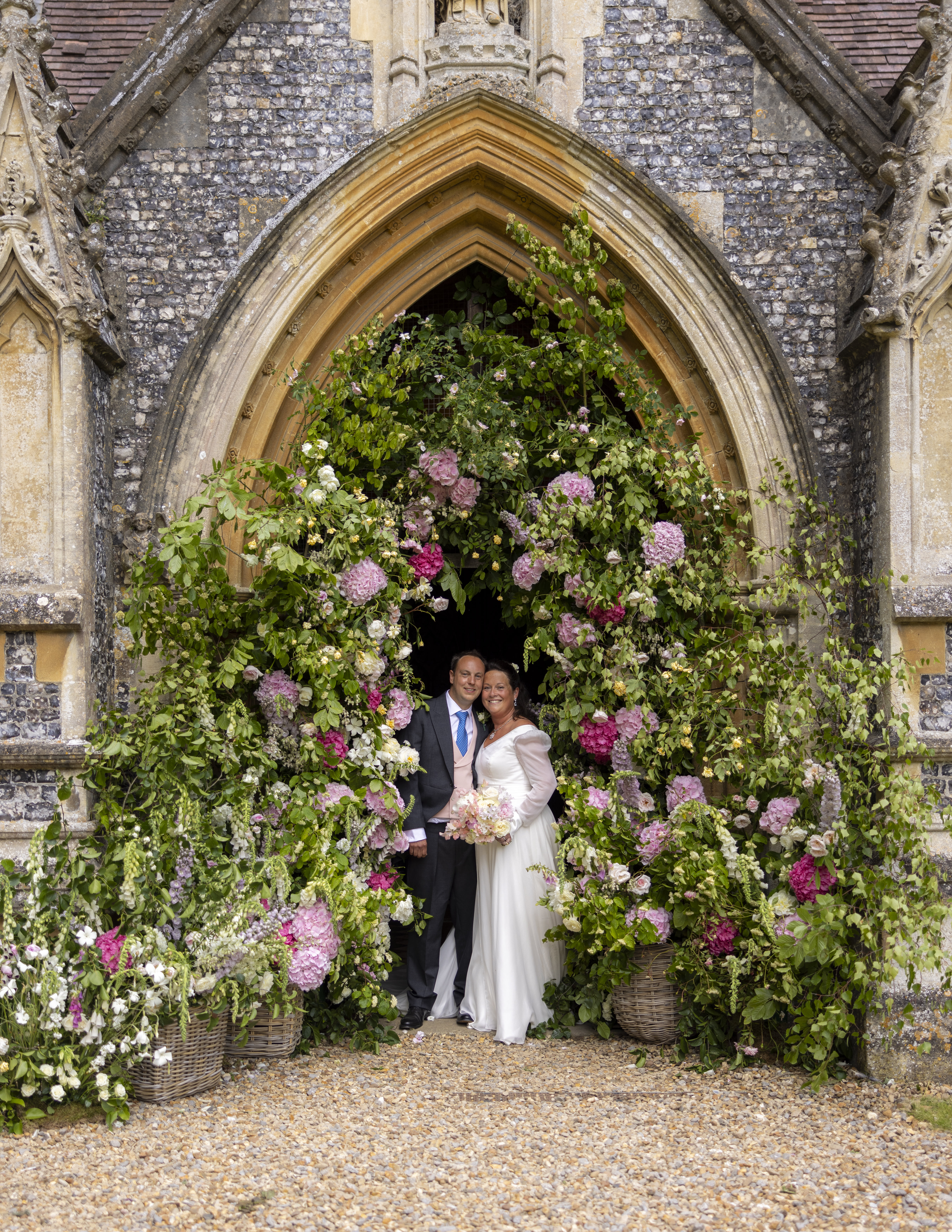 A sizzlingly hot June wedding with a church and marquee filled with the smell of summer. English roses and peonies were in abundance and guests danced the night away to one of the UK’s top party bands.
