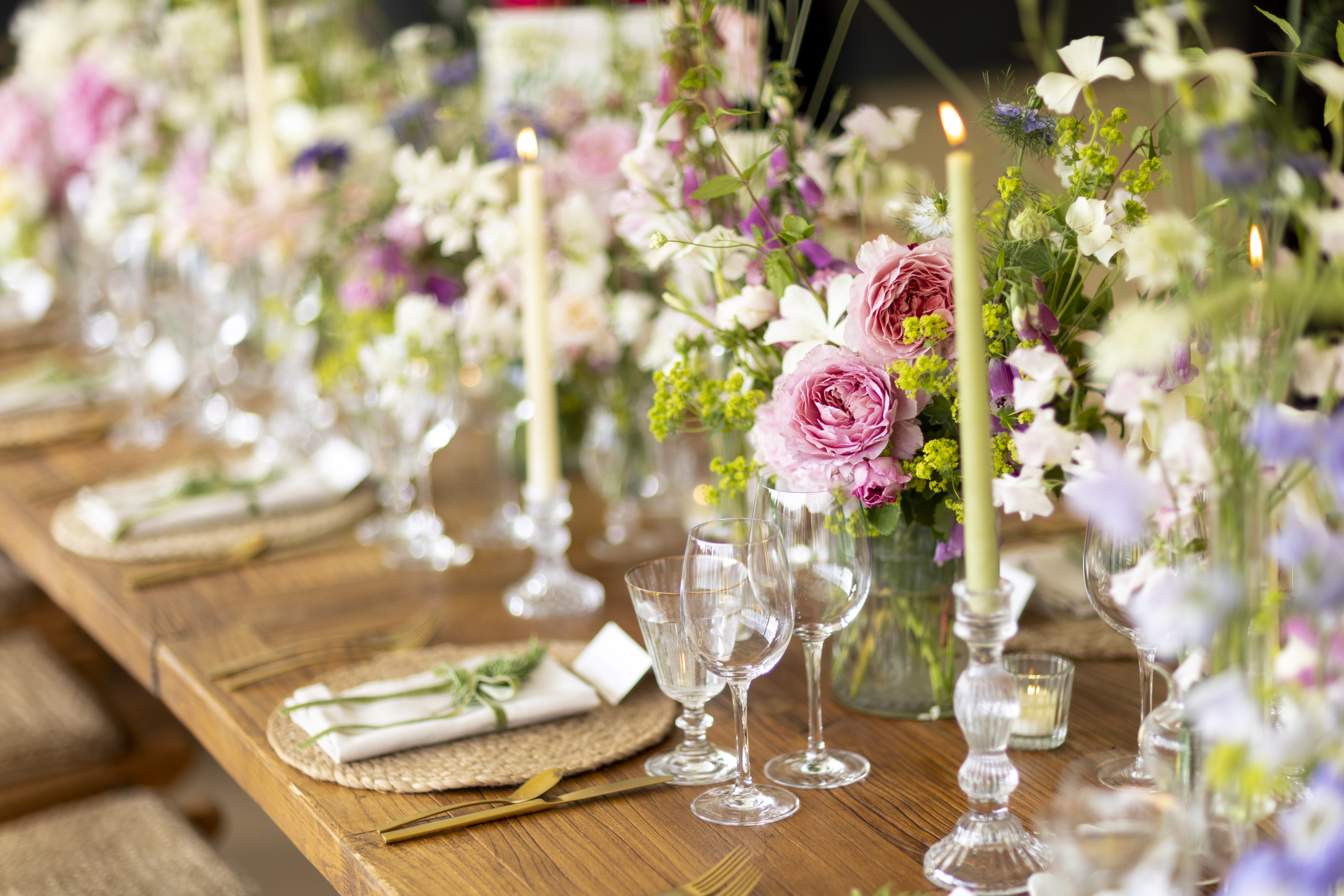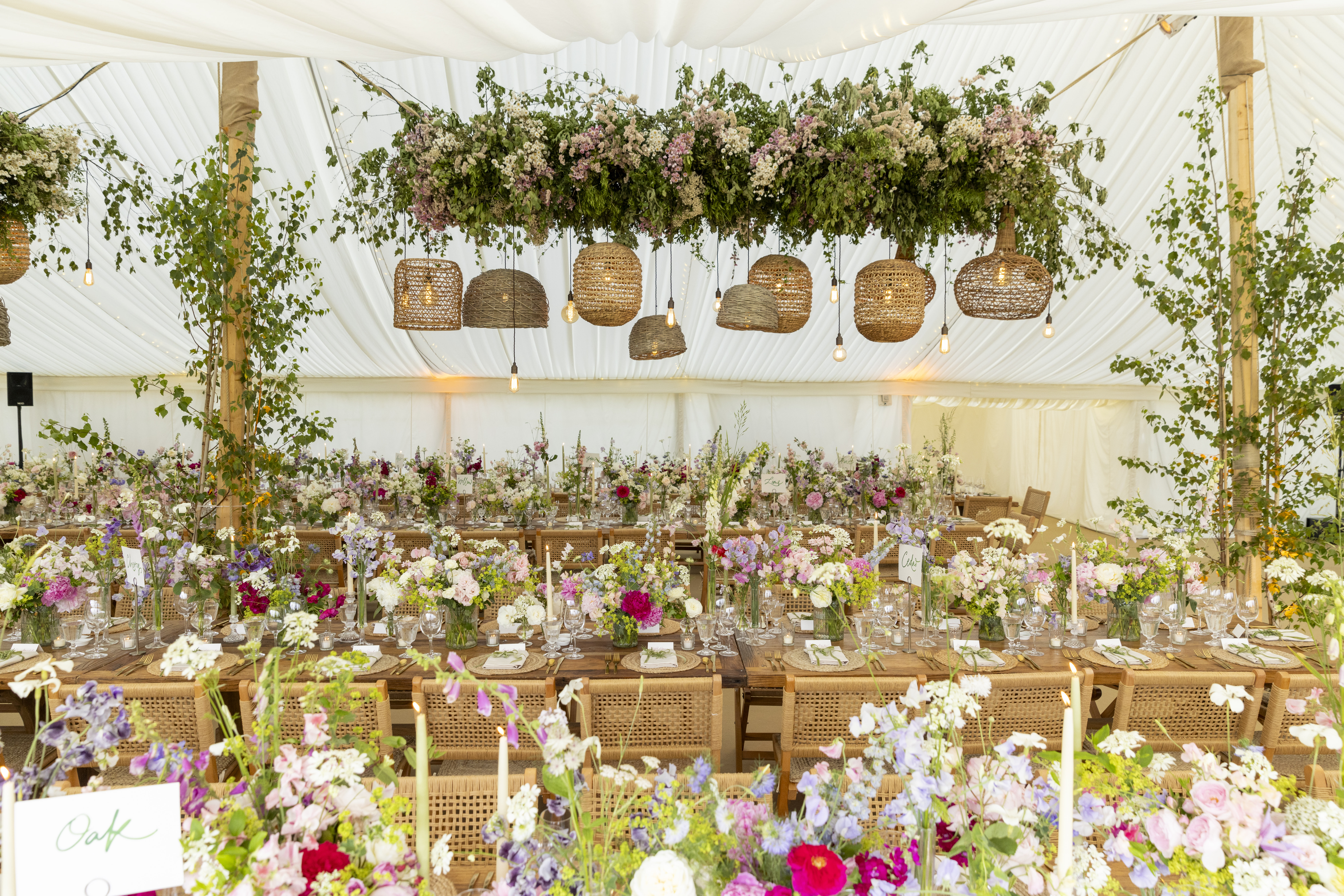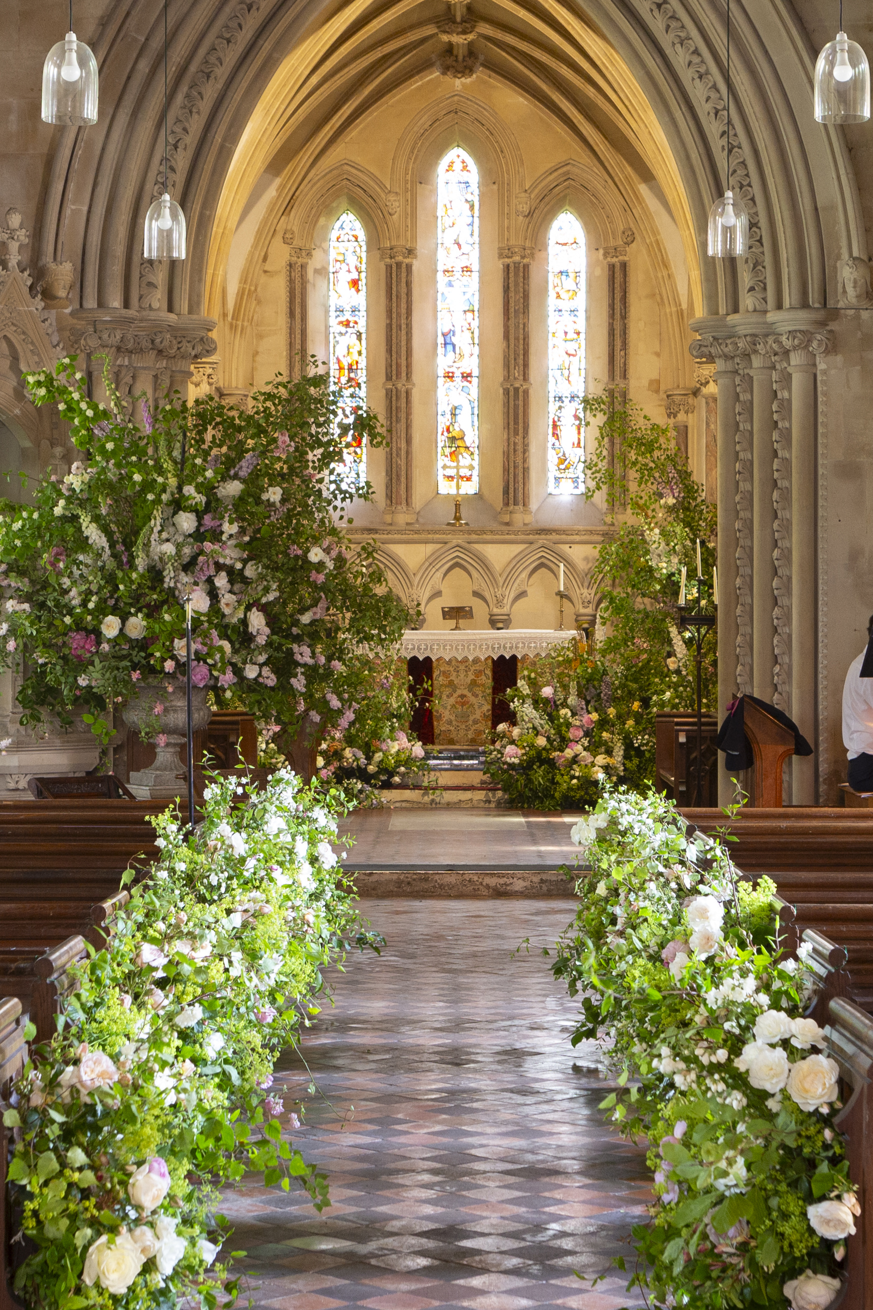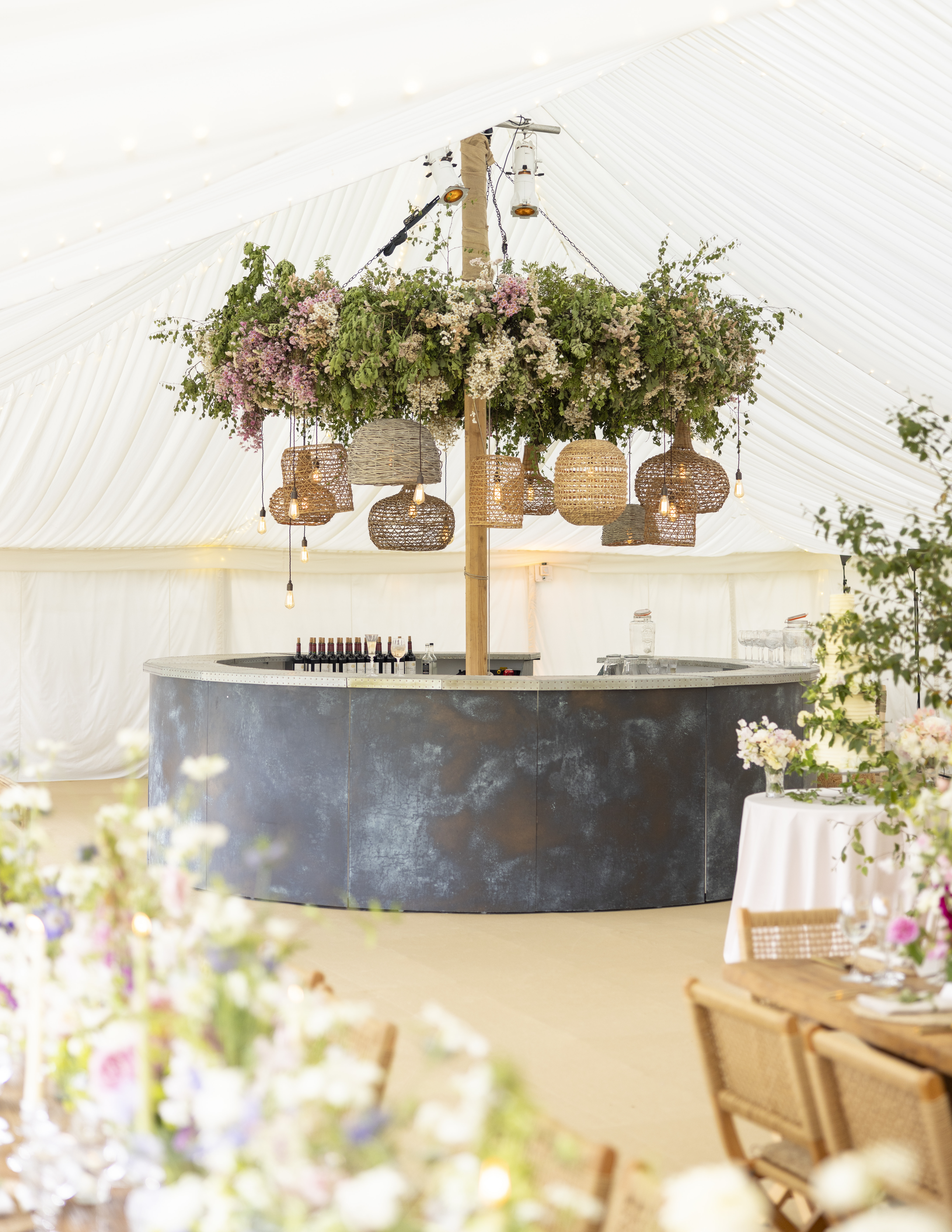 A sizzlingly hot June wedding with a church and marquee filled with the smell of summer. English roses and peonies were in abundance and guests danced the night away to one of the UK’s top party bands.