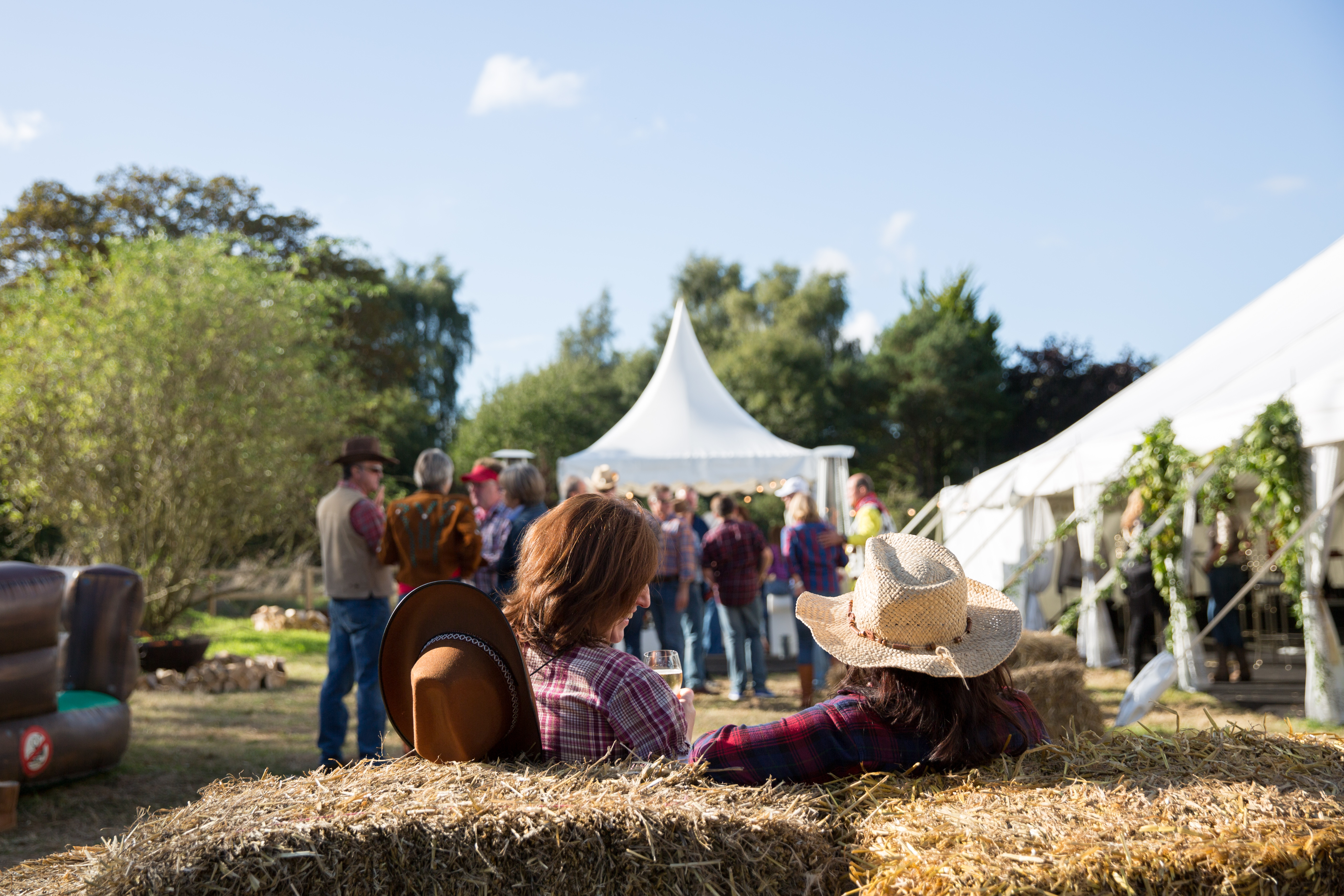 Late summer wedding in a field in Oxfordshire with a beautiful pole tent and hand printed linings. Guests walked from the church to the reception which was held at the couple’s house in the village. On Sunday guests returned for a fantastic Country and Western themed hog roast.